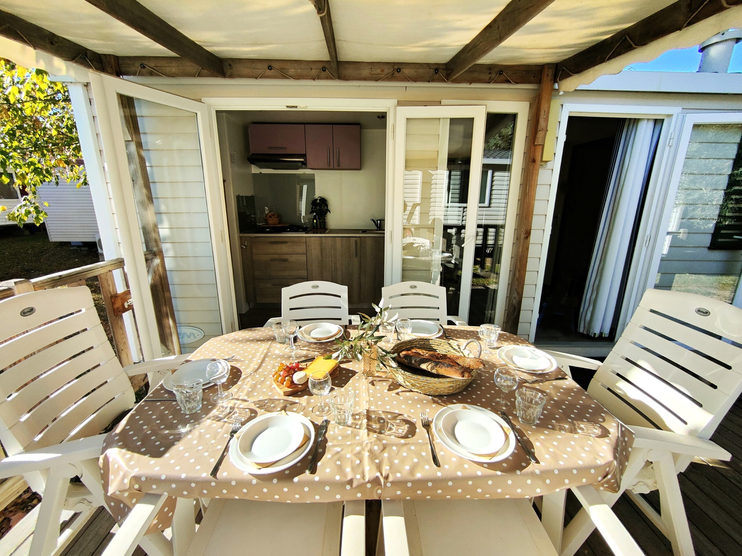 Nos chalets confortables, dotés d’une grande véranda couverte, sont situés au cœur du camping familial et convivial « de Pujol ».